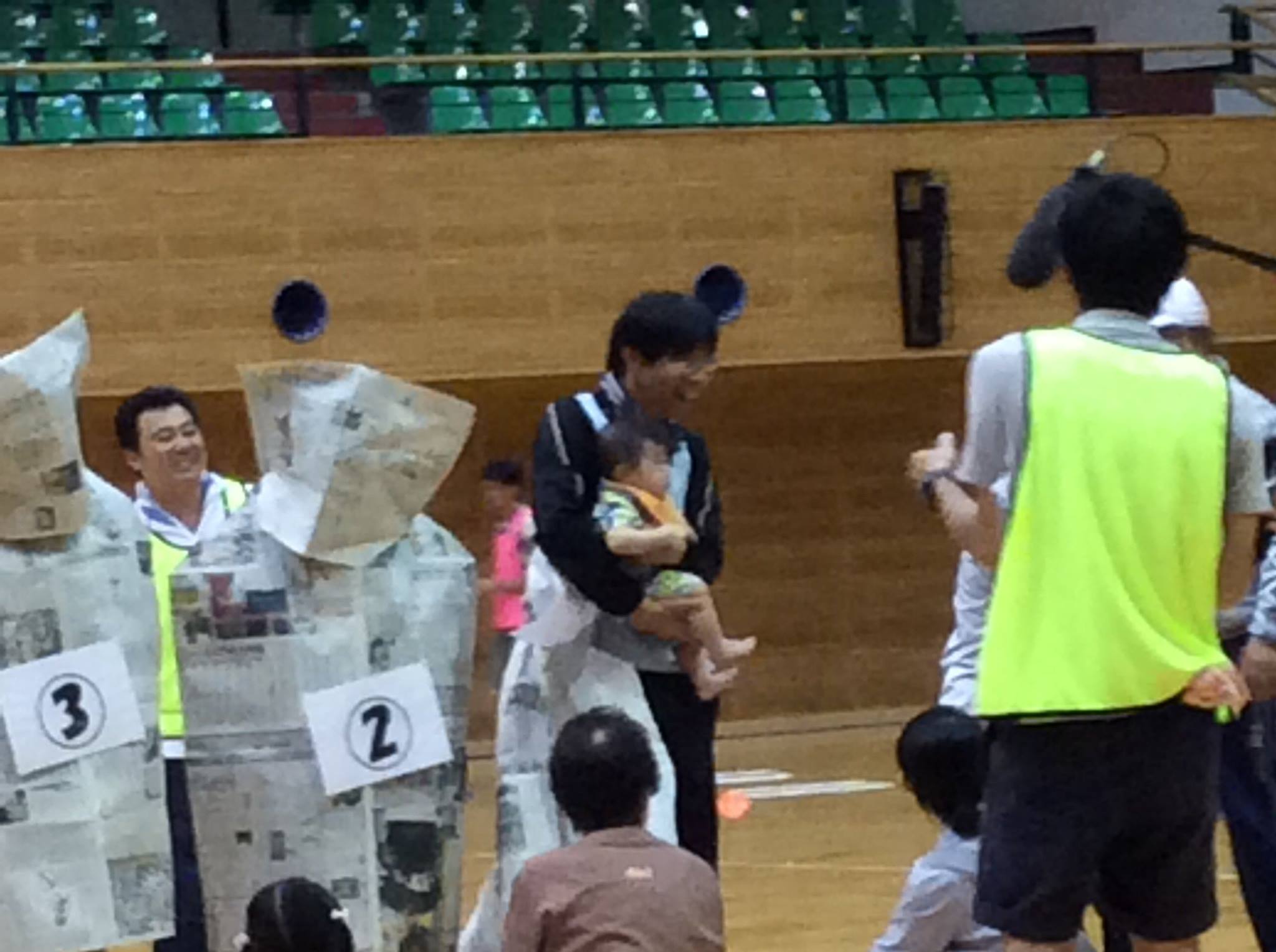 合志市の環境を担っている「セイブクリーン創業50周年記念体育祭」が10時からヴィーブルメインアリーナで開催され、社員・OB・地域・家族・来賓約150人が半日2チームに分かれて真剣に競いあいながらも存分に楽しみました。